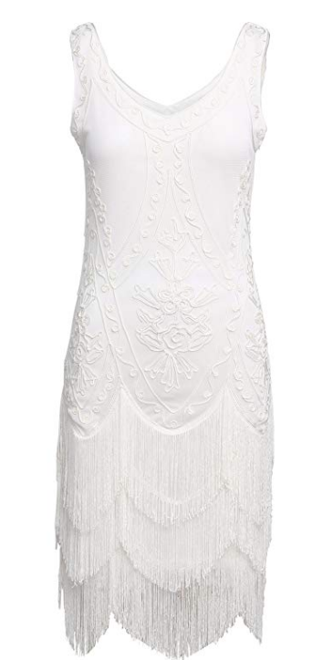Lata 20 sukienka biała z aplikacjami